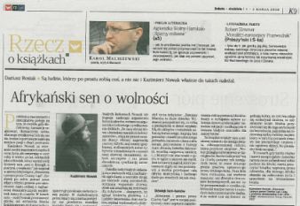 W dodatku do weekendowego wydania dziennika Rzeczpospolita „Rzecz o książkach” ukazała się obszerna recenzja książki „Rowerem i pieszo przez Czarny Ląd” zatytułowana „Afrykański sen o wolności„.